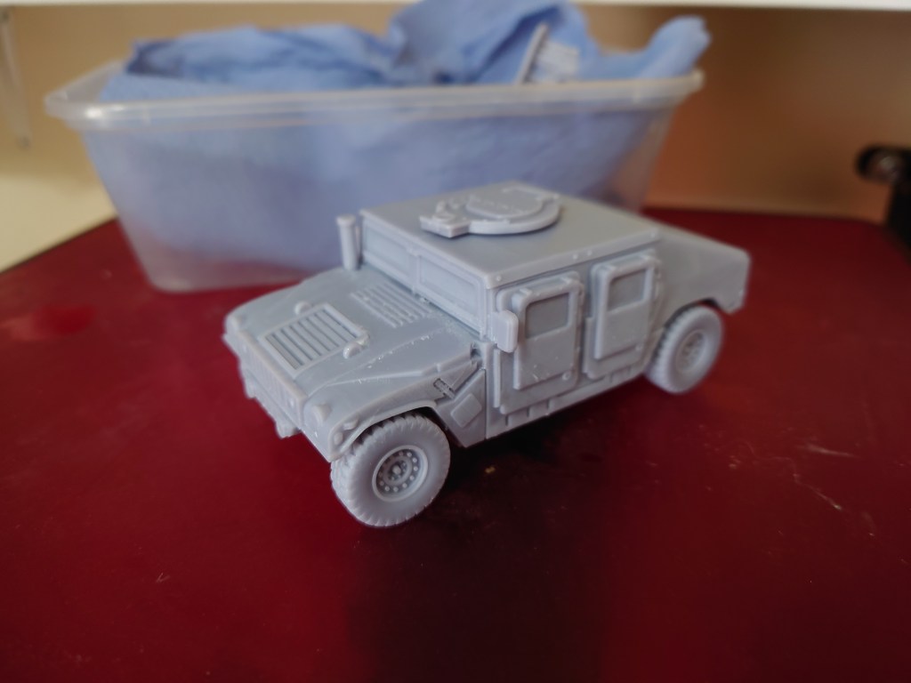 Elsewhere, the first successful print from the Humvees Kickstarter is just about ready for paint: